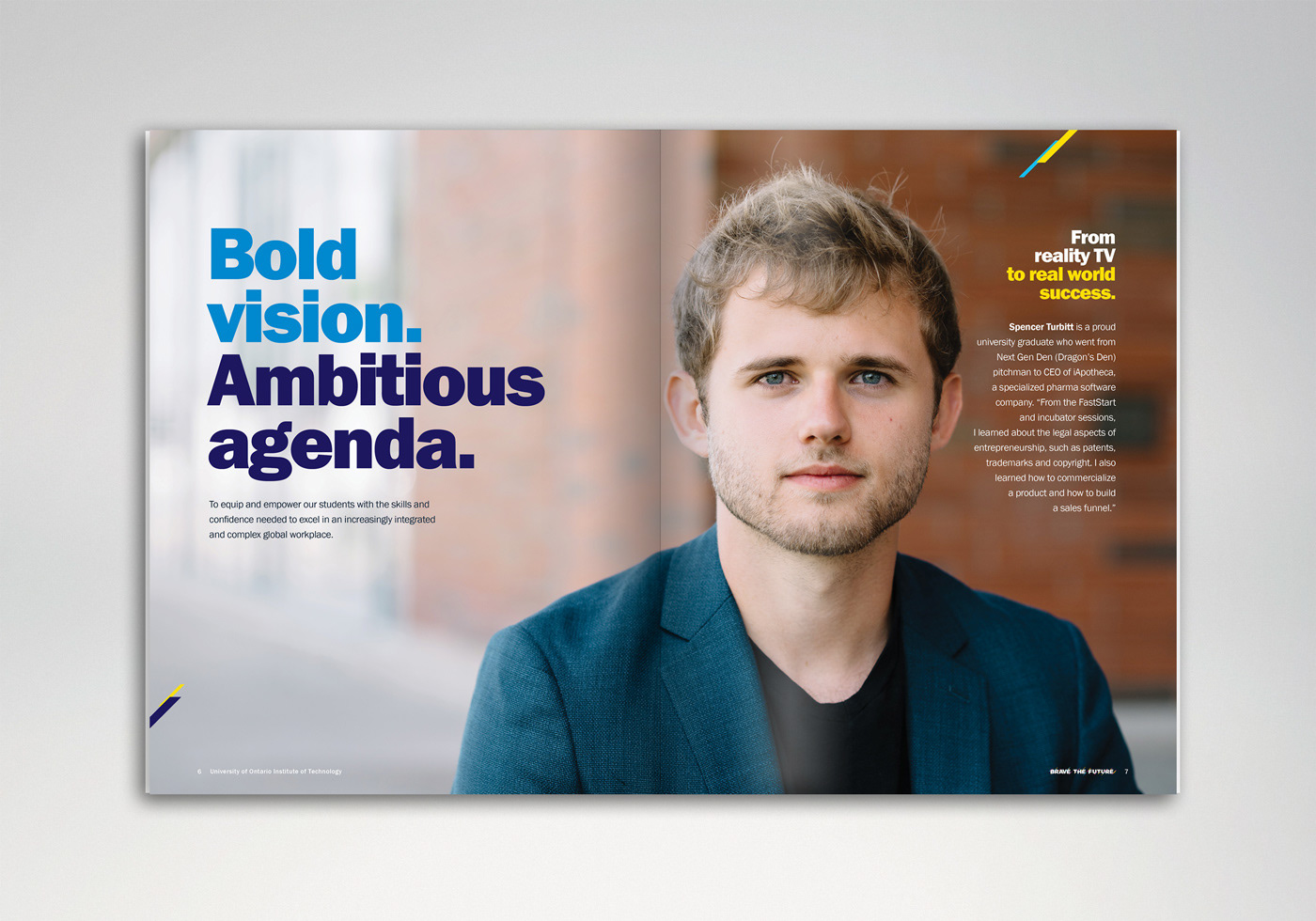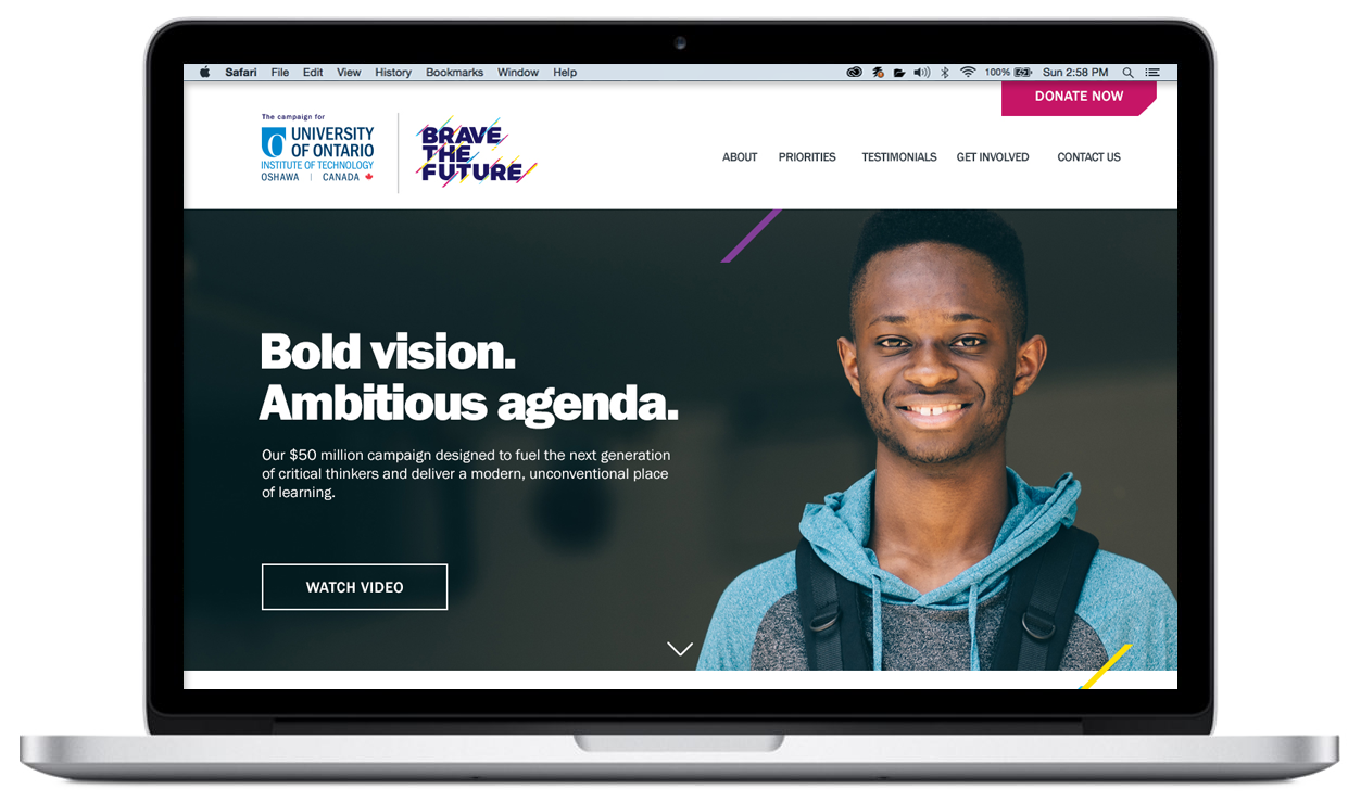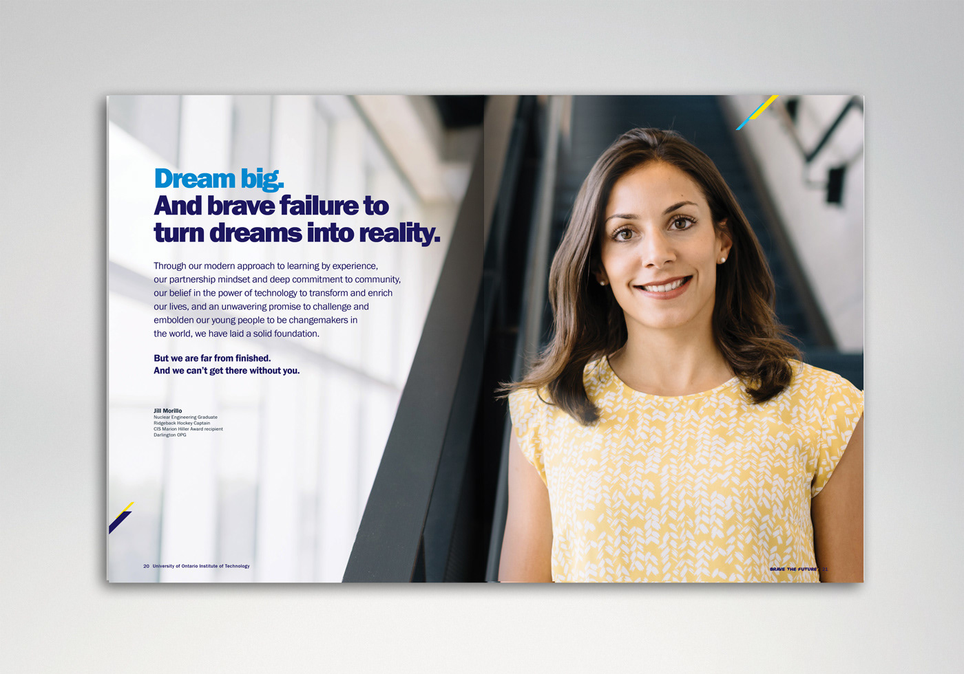 The fundraising campaign for the University of Ontario Institute of Technology is called Brave The Future. It’s a call to action driven by the idea that experience is power and learning is inspired by the possibility of what is to come.